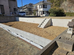 F様邸解体後埋戻し盛り土土留め壁完了